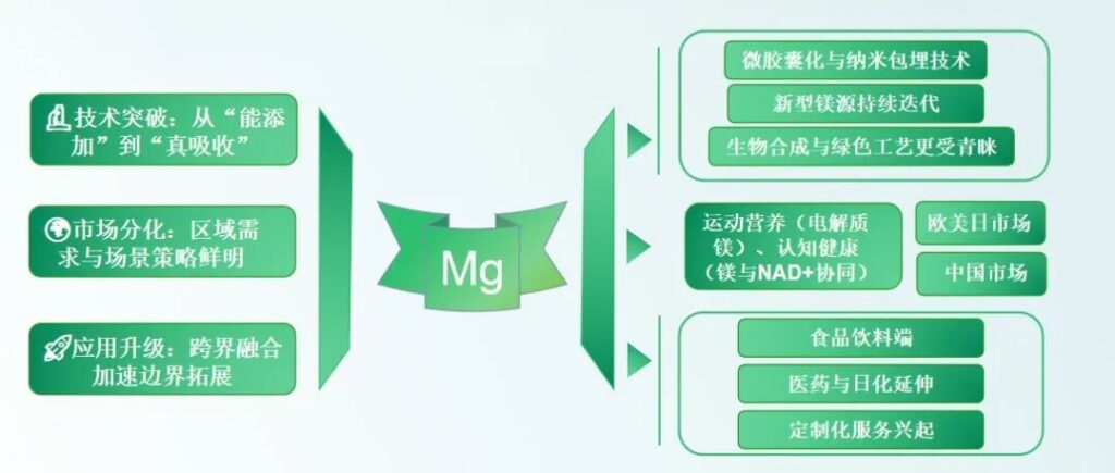 镁盐未来发展趋势:高生物利用度、场景化、精准化、市场差异化。