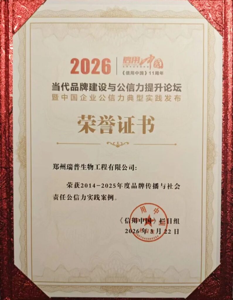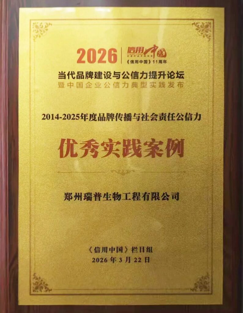 获此荣誉,既是激励,更是责任。未来,郑州瑞普将继续秉持“诚信、创新、共赢”的核心价值观,将公信力建设融入企业经营的每一个环节,以更高的标准提升品牌价值,为客户提供更优质的产品与服务,为推动行业健康、可持续发展贡献“瑞普力量”。