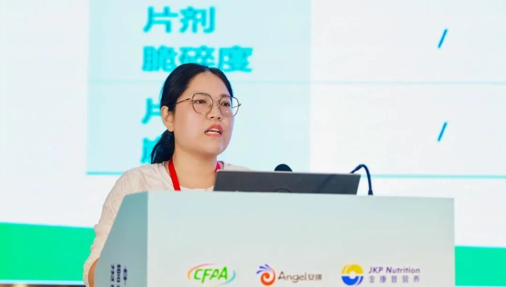 郑州瑞普技术副总则以 “营养秘钥” 为主题,分享了营养素从单一矿物质盐到复配方案的有效补充路径。她从加工应用、稳定性、风味优化、吸收效率四个维度,详细阐释了营养素应用的最新突破。其中,重点介绍了我司创新的制剂化技术,该技术能系统性解决营养素在生产加工中的痛点,显著改善物料的吸潮性、口感、流散性、混合均一性等重要指标,最终实现营养素的高效、稳定与靶向输送。